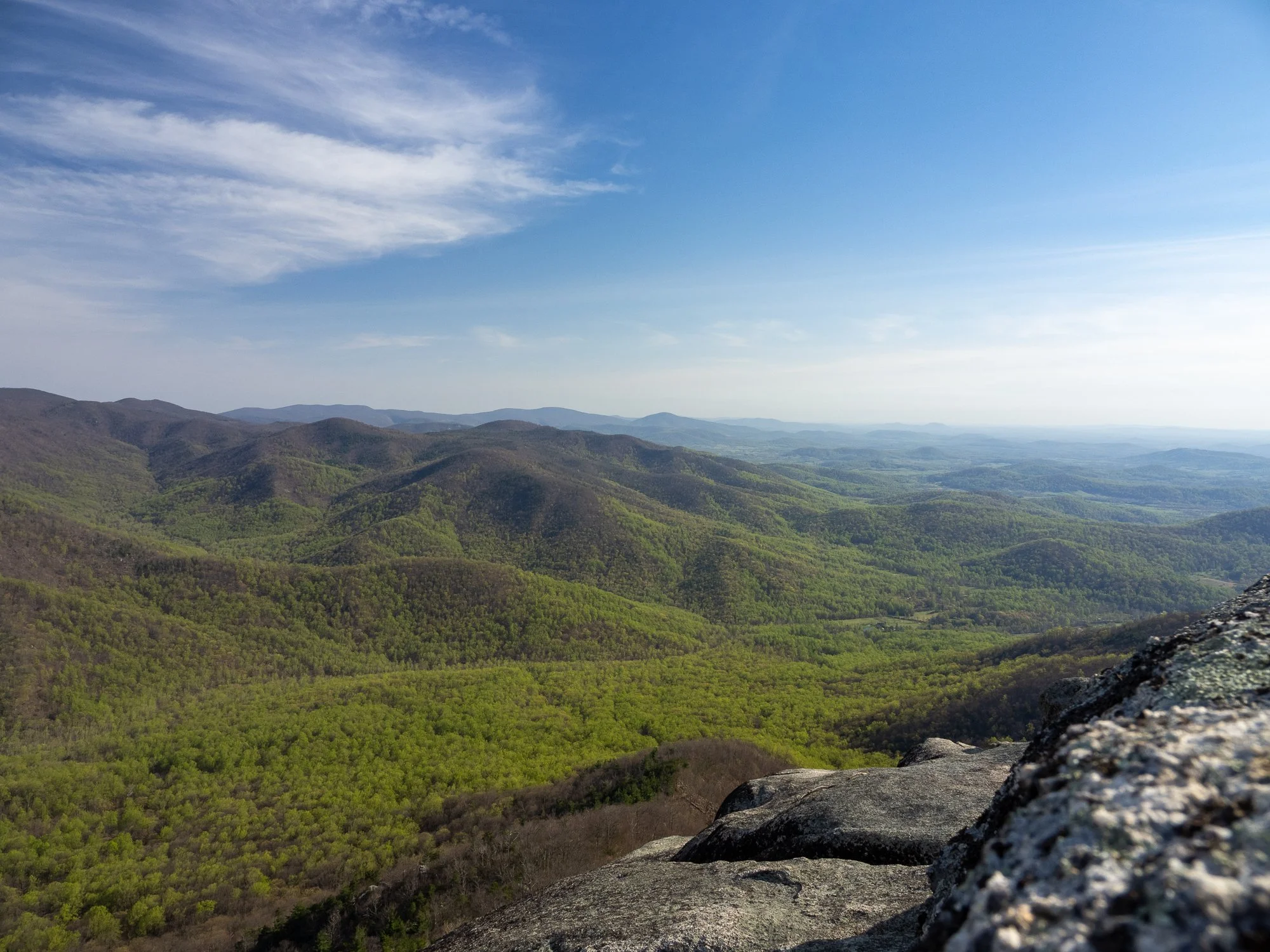I left DC around 5am, arrived at the Old Rag parking lot at 7. The parking lot was pretty empty. I fast-hiked most of the way up, running the few flatter sections when I could, trying to keep my heart rate and exertion level low since I really wasn’t sure what kind of shape I was in. I passed a few other groups and some blooming pink trillium. It took about 1:30 to get to the summit. I packed along a camera and took some time on the summit.
